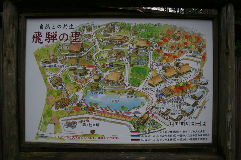 We reached Takayama at about 1.30pm and proceeded to our hotel. It was a Japanese-style ryokan with tatami mats and futon beds. We left our luggage at the hotel as we could only check in after 3pm. Then we went to the bus interchange and took a public bus to the Hida-no-sato (Hida Folk Village). Not knowing the Japanese language, we did not alight at our supposed bus-stop, but the driver was very kind. He actually drove us back to Hida-no-sato! π