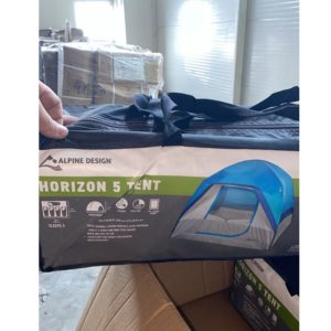 Tent #3 by p · Published Thu 5 Oct 2023 · Updated Thu 5 Oct 2023 This year’s addition – given to us by a relative. Never used before. Brand : Alpine Design Model: Horizon 5 Tent Item No : UPC : Size: 10′ by 9′ (3.05m by 2.74m) Height: 74″ (1.89m) Photos from internet. Related